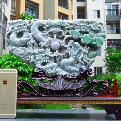 糯冰春带彩 天然翡翠A货 霸气九五至尊五龙摆件