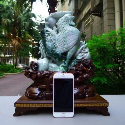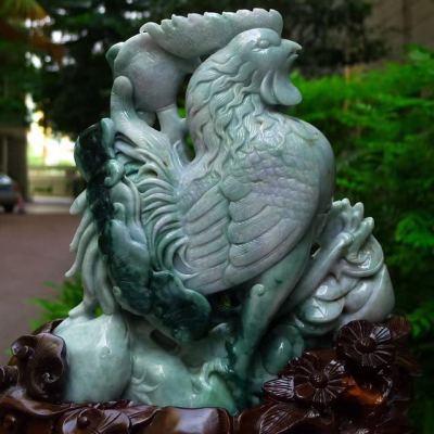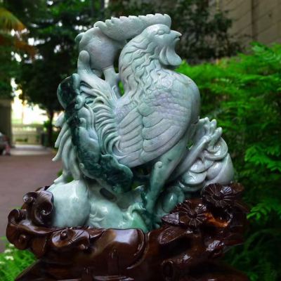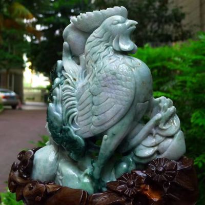 翡翠A货 老坑浅春彩飘花 金鸡独立公鸡摆件