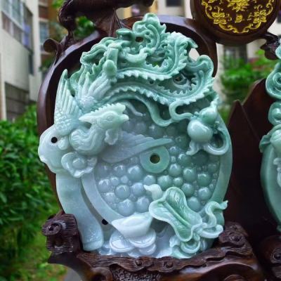 翡翠玉雕摆件要根据翡翠的颜色、纹理走向来