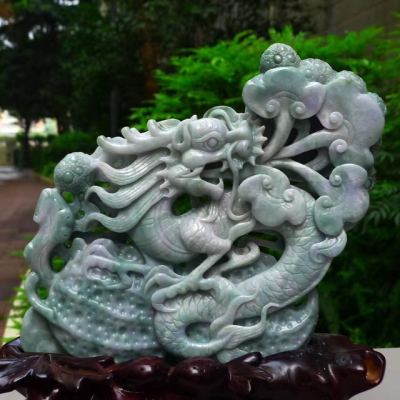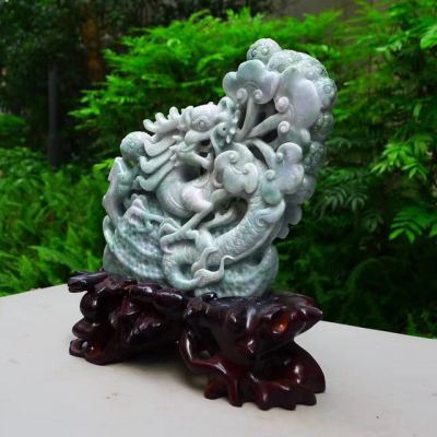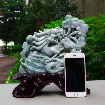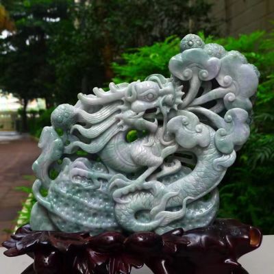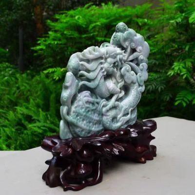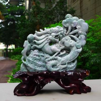 翡翠A货 老坑水润春带彩 生意兴隆花生龙摆件