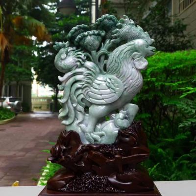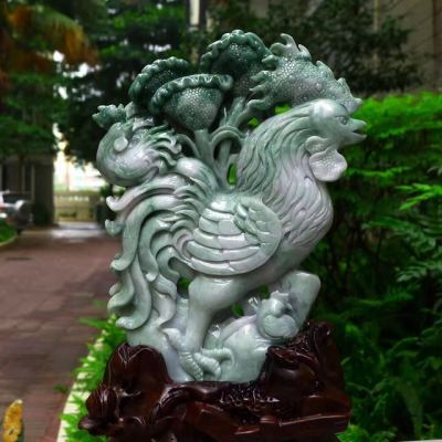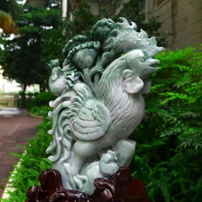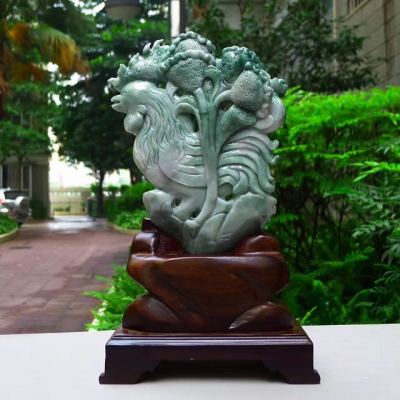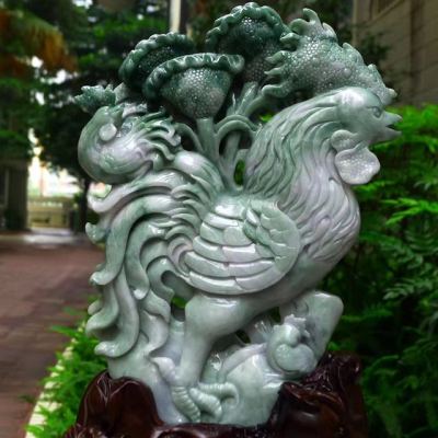翡翠A货 老坑水润飘绿 加官进爵公鸡摆件