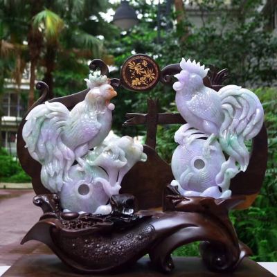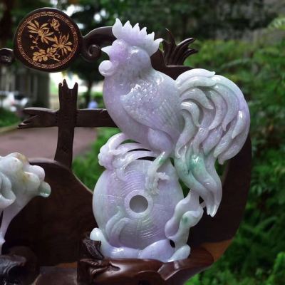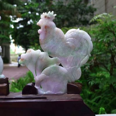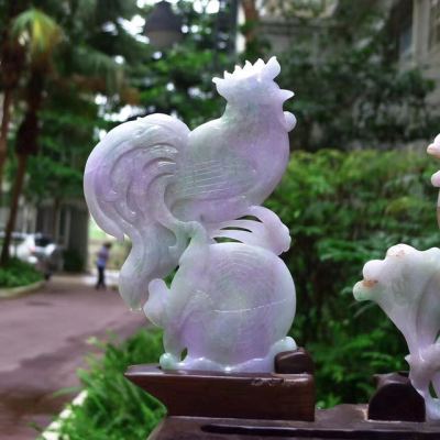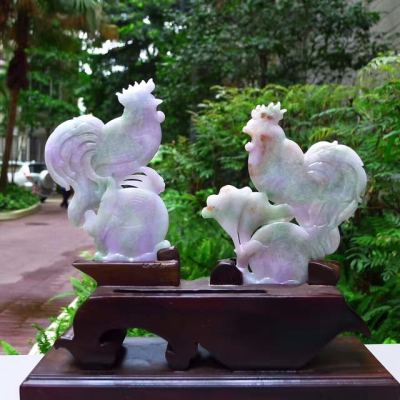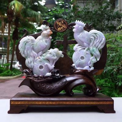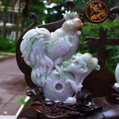 翡翠A货 老坑水润三彩 加官进爵公鸡摆件