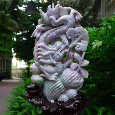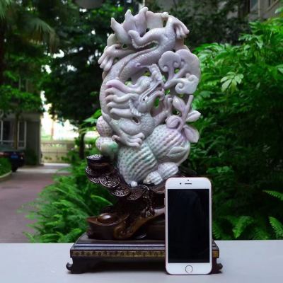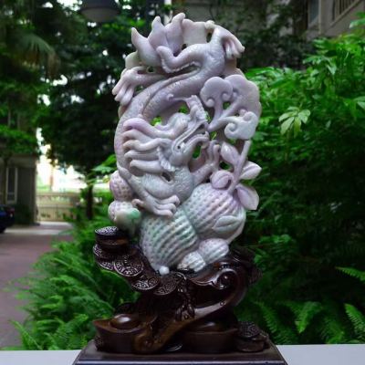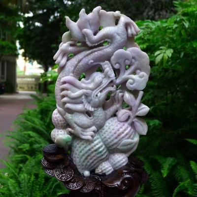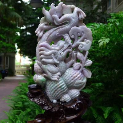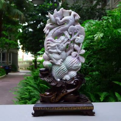 翡翠A货 老坑糯种春带彩 生意兴隆花生龙摆件
