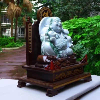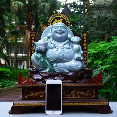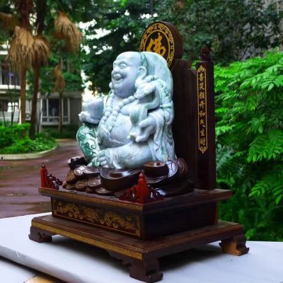 翡翠A货 老坑水润春彩飘绿 弥勒佛笑佛摆件