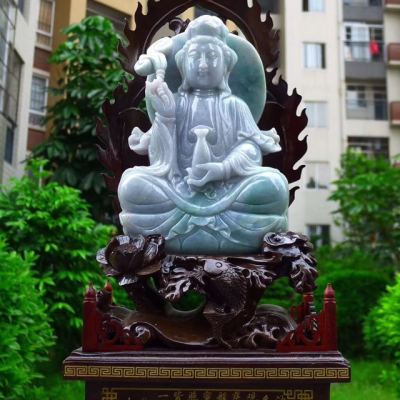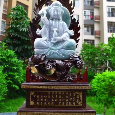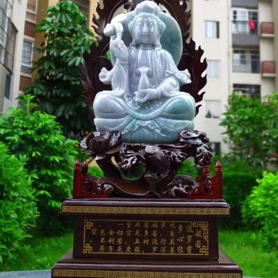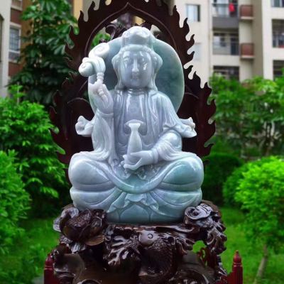 精美春带彩翡翠A货 大尊观音菩萨摆件