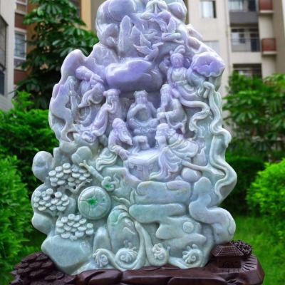 翡翠A货 精美春彩飘花 八仙山水摆件