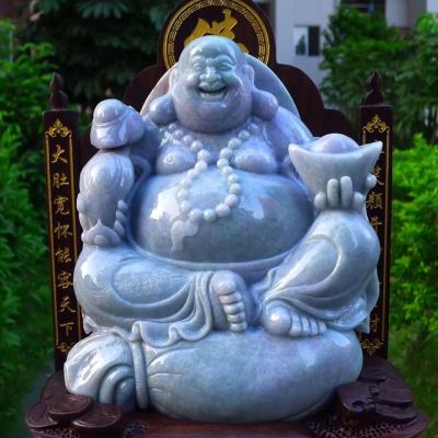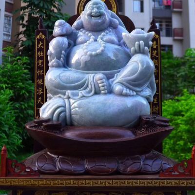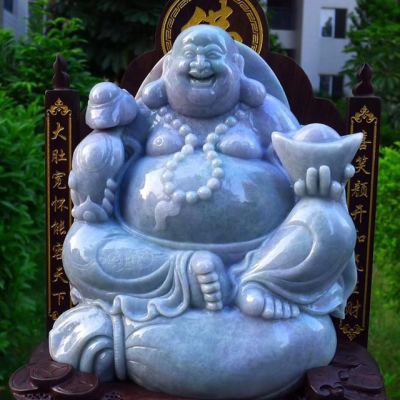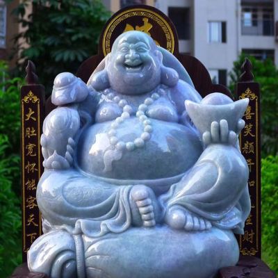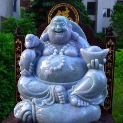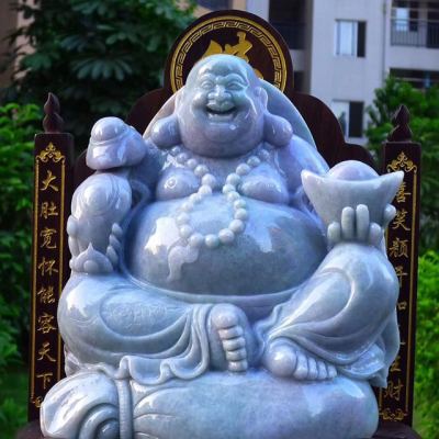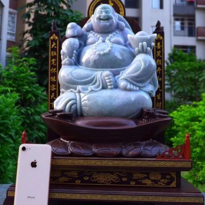 天然翡翠A货 冰糯春带彩 超大尊饱满笑佛摆件