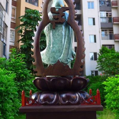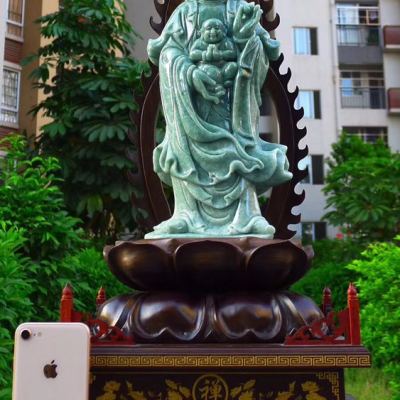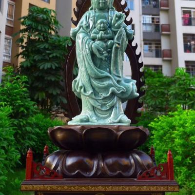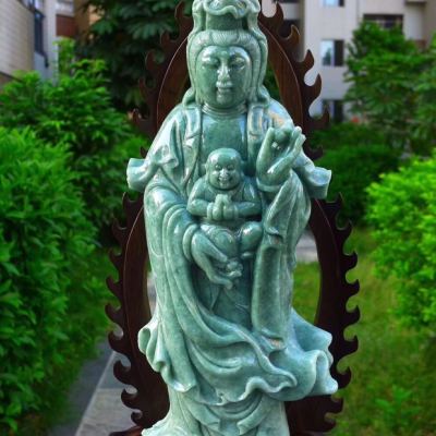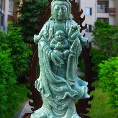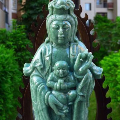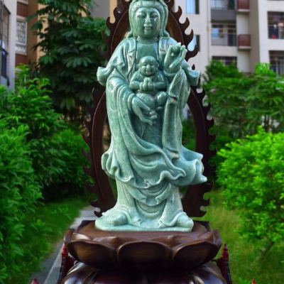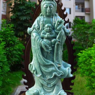 翡翠A货 精美满绿 大尊送子观音摆件