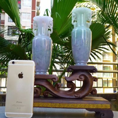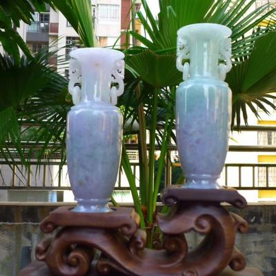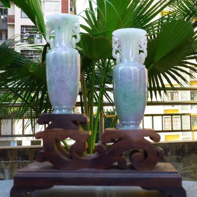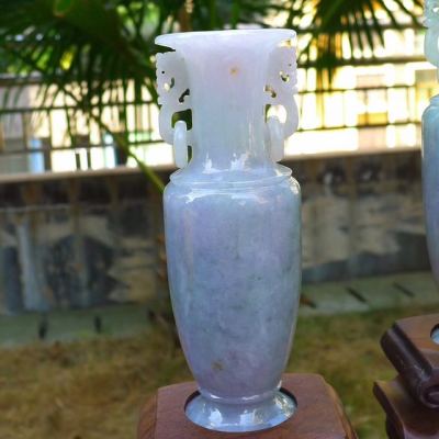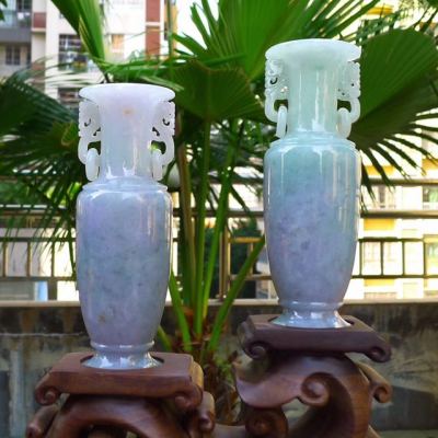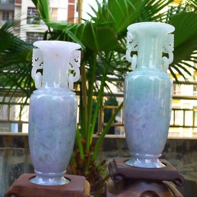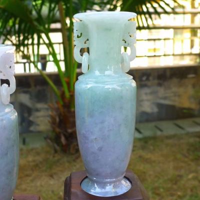 天然翡翠A货 冰糯春带彩 花瓶翡翠摆件