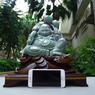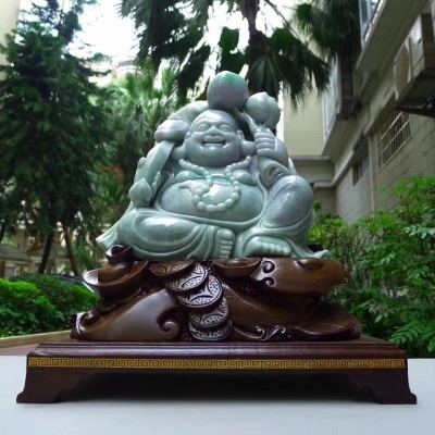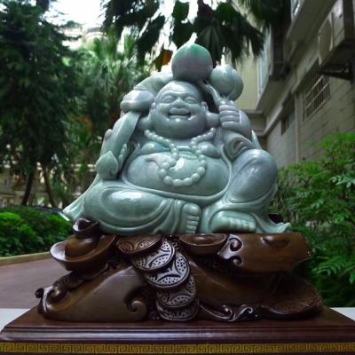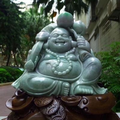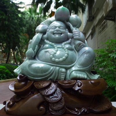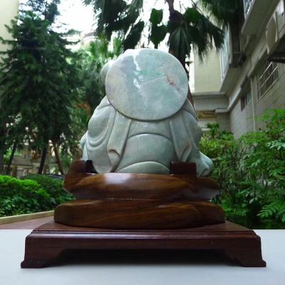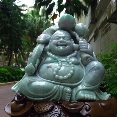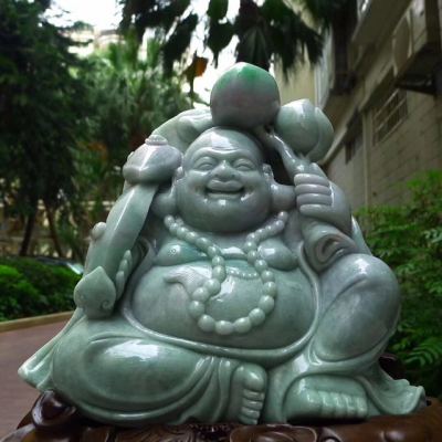 翡翠A货 老坑春彩 弥勒笑佛摆件