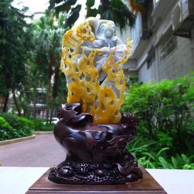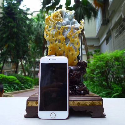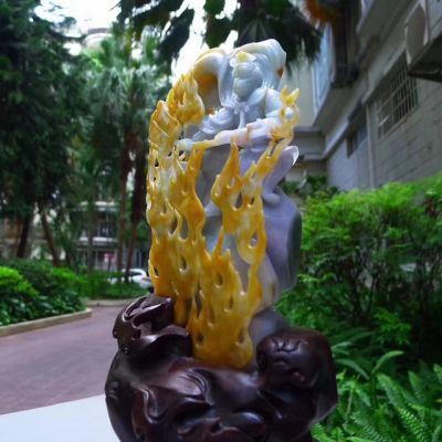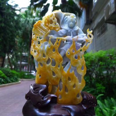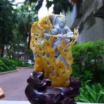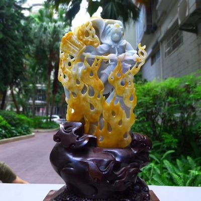 翡翠A货 老坑紫罗兰飘黄翡 齐天大圣火焰山摆件