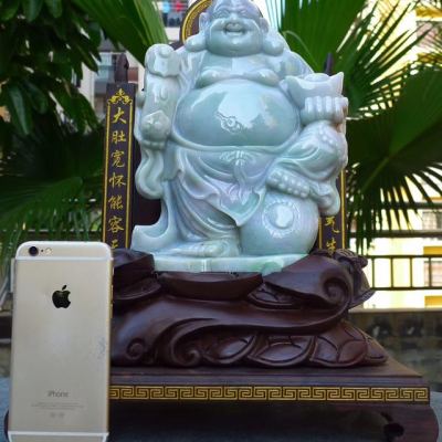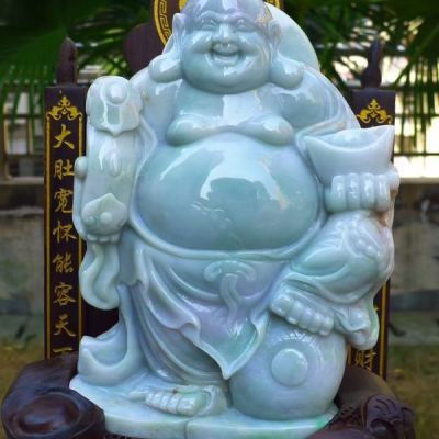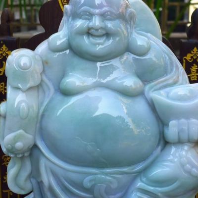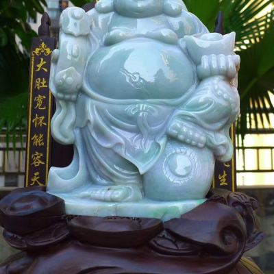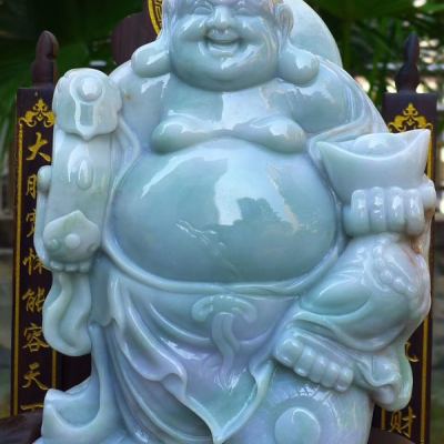 春彩飘花翡翠 超大尊笑口常开佛摆件