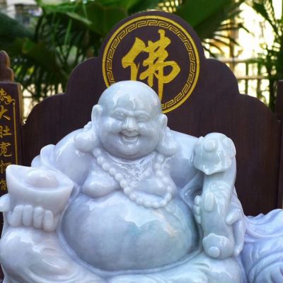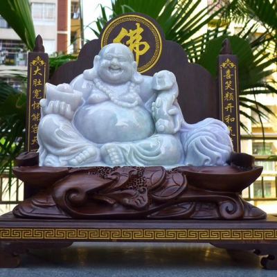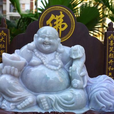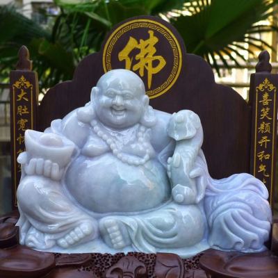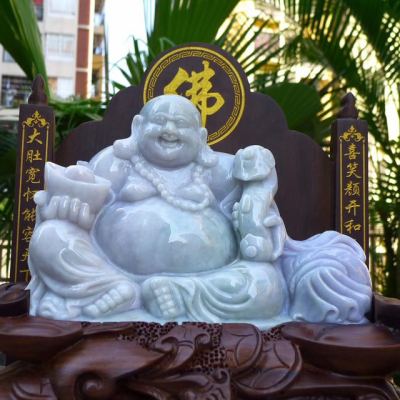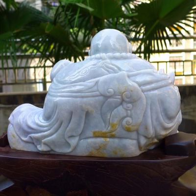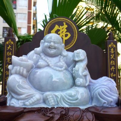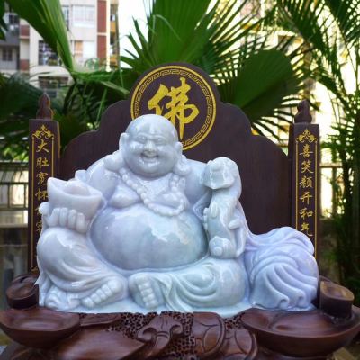 天然翡翠A货 春带彩大件笑佛摆件