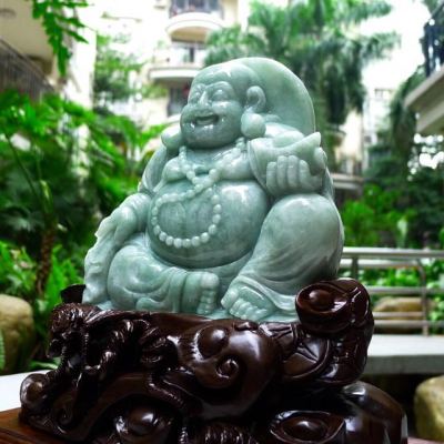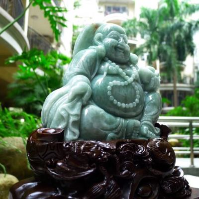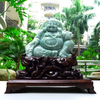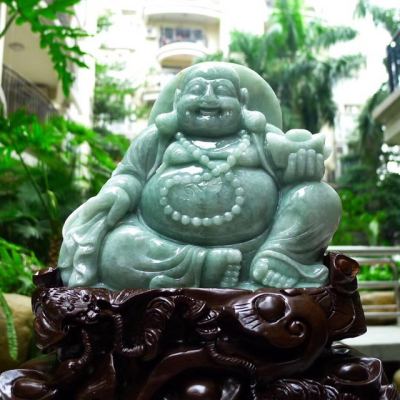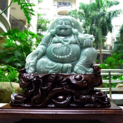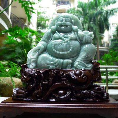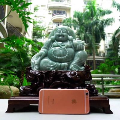 180*185*55寸翡翠A货 满绿弥勒佛摆件 约尺寸