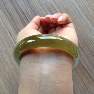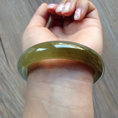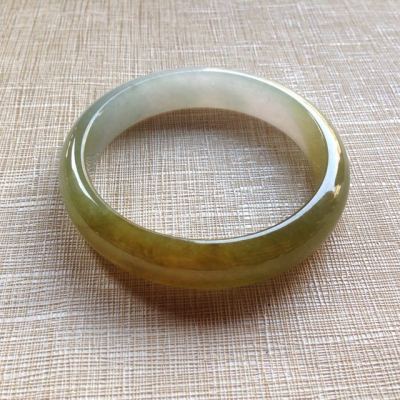 冰糯黄翡手镯 天然翡翠平安镯 正圈尺寸:56/12.7/7.2