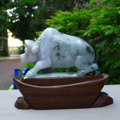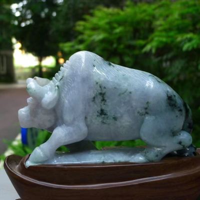 翡翠A货 老坑紫底飘花 牛气冲开招财牛翡翠摆件