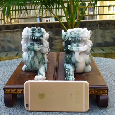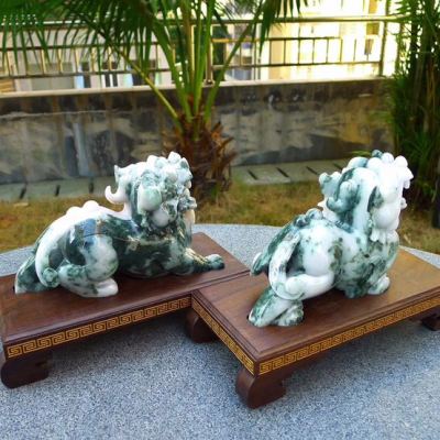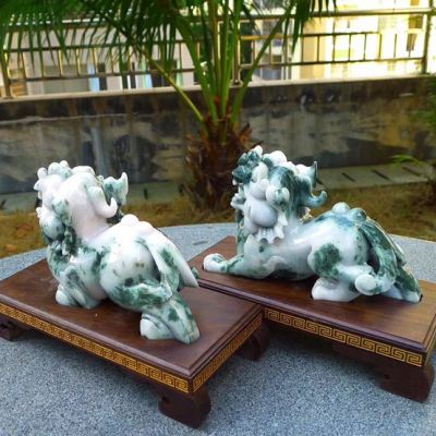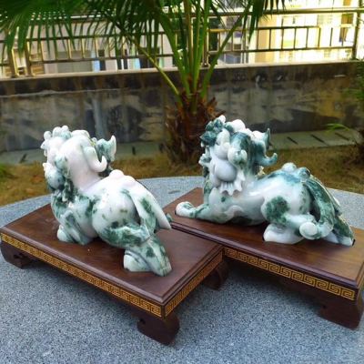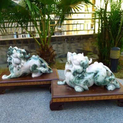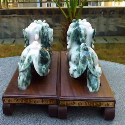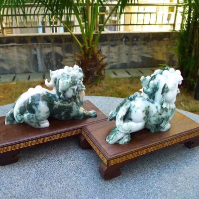 翡翠A货飘花翡翠 貔貅招财摆件一对