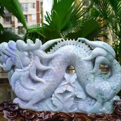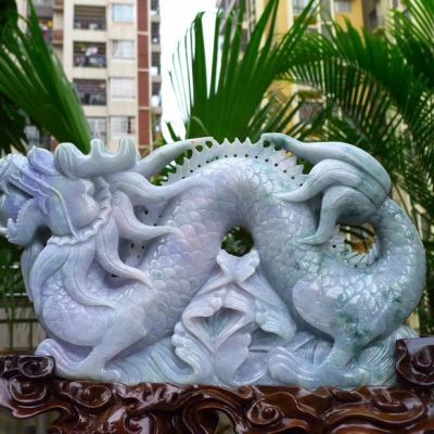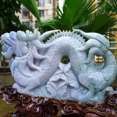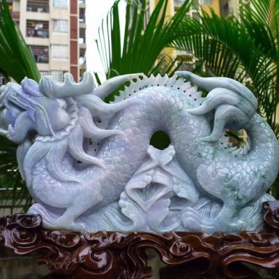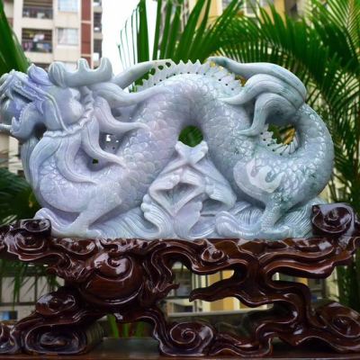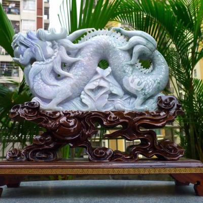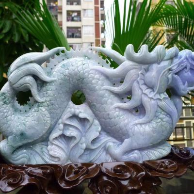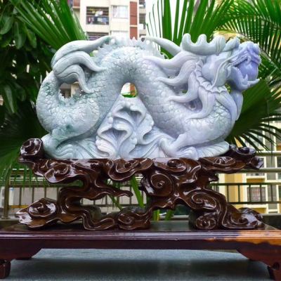 翡翠A货 精美飘花 霸气龙翡翠摆件