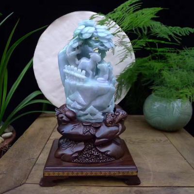 290*160*110寸老坑冰润洋洋得意翡翠摆件 连底座长