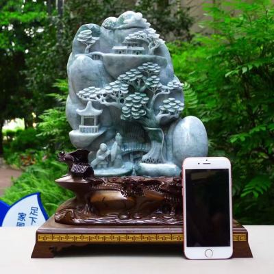 老坑飘花 松下老人山水翡翠摆件