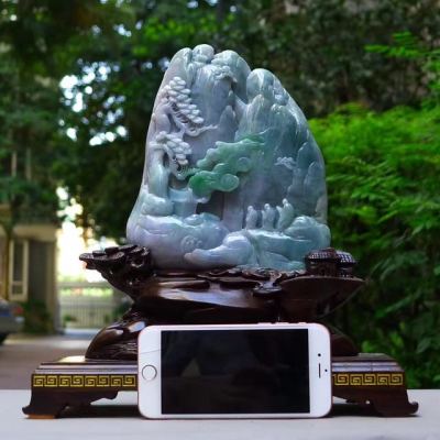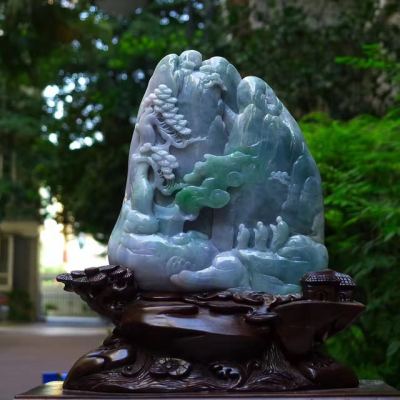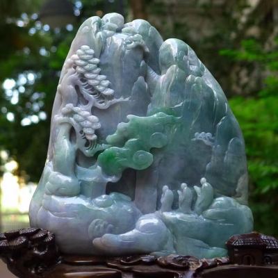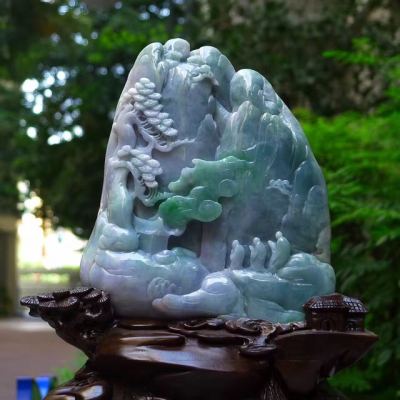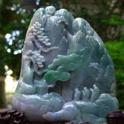 老坑蓝水飘绿 灵山问道山水翡翠摆件