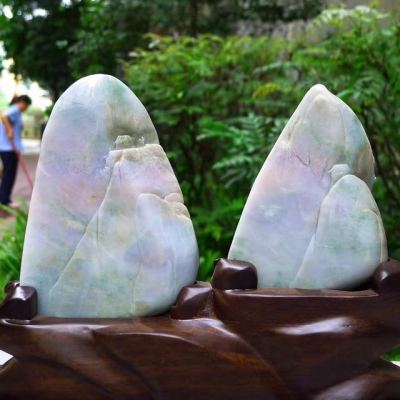 水润春带彩 山中访贤指日高升山水翡翠摆件