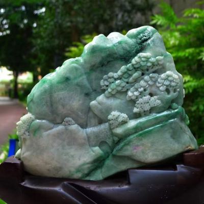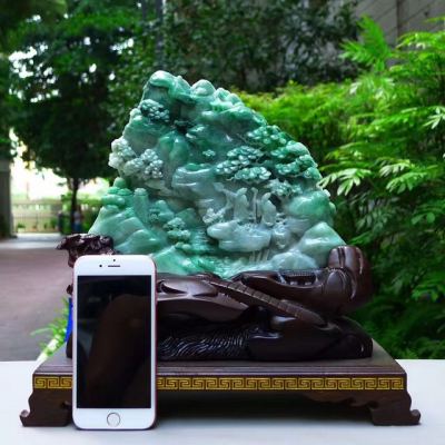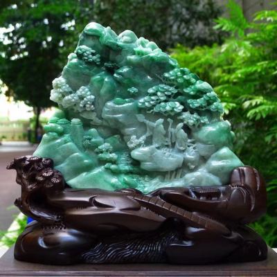 老坑满绿 指点江山运筹帷幄山水翡翠摆件