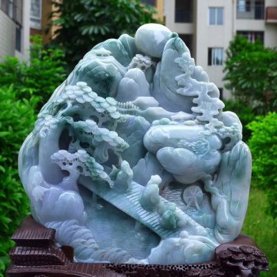 翡翠玉雕摆件要根据翡翠的颜色、纹理走向来