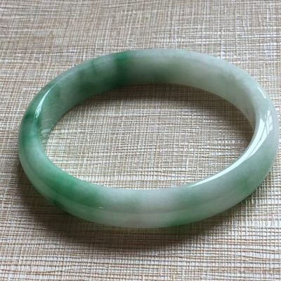 52.0圏口糯种飘绿翡翠手镯 缅甸天然翡翠贵妃手镯 尺寸52.0*44.0*10.6*5.8mm