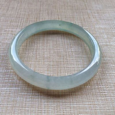 冰种起荧光翡翠手镯 缅甸天然翡翠平安镯 尺寸:55.7/8.1/6.3
