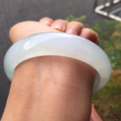 冰种晴水翡翠手镯 缅甸天然翡翠正圈手镯57.2寸