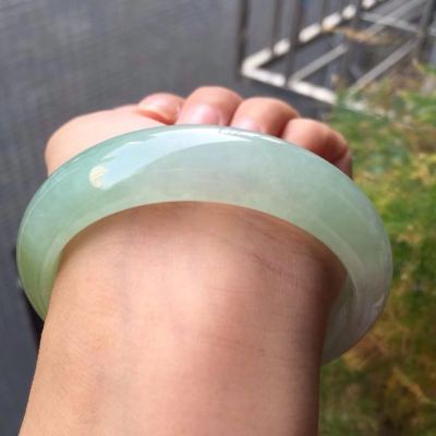 冰种双彩翡翠手镯 缅甸天然翡翠正圈手镯56.4寸