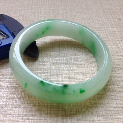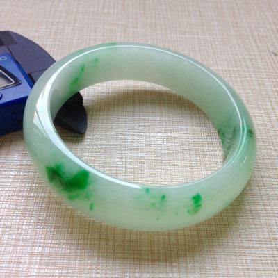 冰种飘绿翡翠手镯 缅甸天然翡翠正圈手镯60.3寸