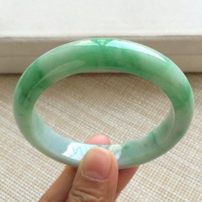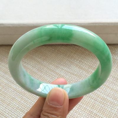 冰种飘绿翡翠手镯 缅甸天然翡翠手镯 尺寸:57.7寸