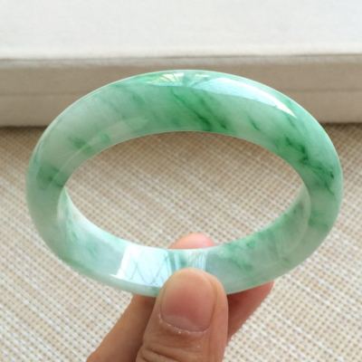 冰种飘绿花翡翠手镯 缅甸天然翡翠正圈手镯 尺寸 53.5寸