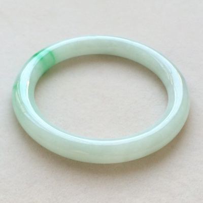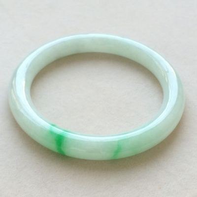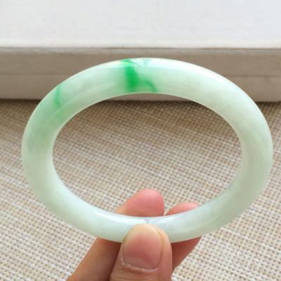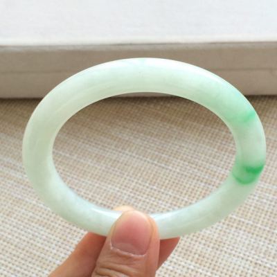 冰种飘绿翡翠手镯 缅甸天然翡翠圆条手镯 尺寸:56.8寸