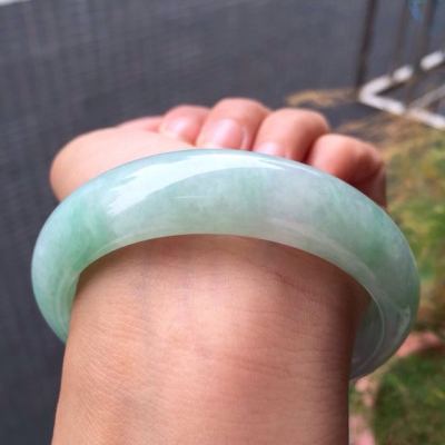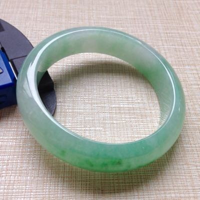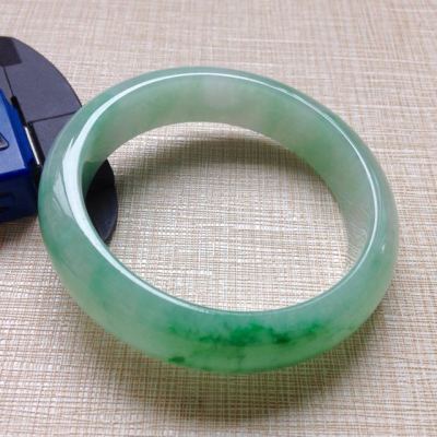 冰种飘绿翡翠手镯 缅甸天然翡翠正圈手镯56.8/14.3/7.7