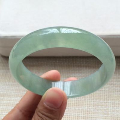 冰种晴水翡翠手镯 缅甸天然翡翠手镯 尺寸:54.5*14*6.8mm