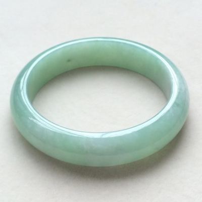 冰种飘绿翡翠手镯 缅甸天然翡翠手镯 尺寸:57.2*14.2*7.7mm