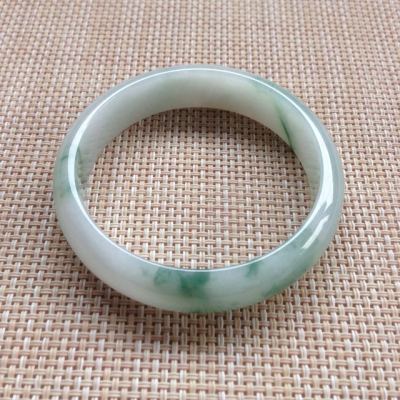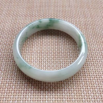 正圈糯种飘花翡翠手镯 缅甸天然翡翠手镯 花色灵动
