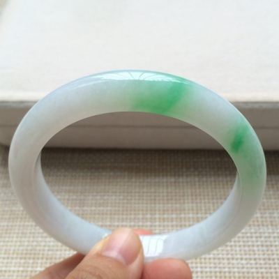 冰糯种飘花翡翠手镯 缅甸天然翡翠手镯 尺寸:62*11*9.4mm