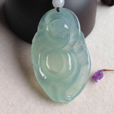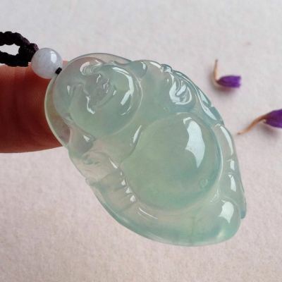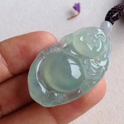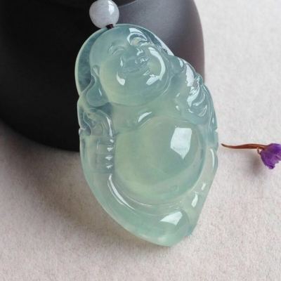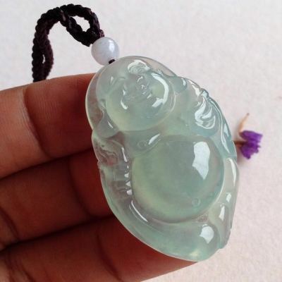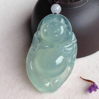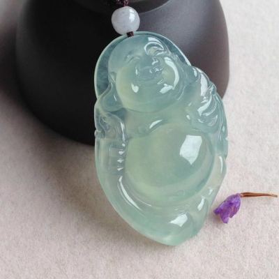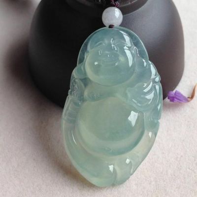 冰晴底布袋佛翡翠吊坠