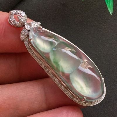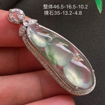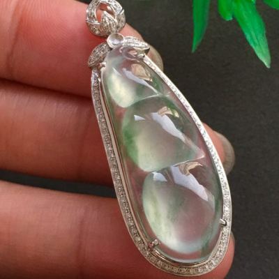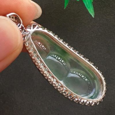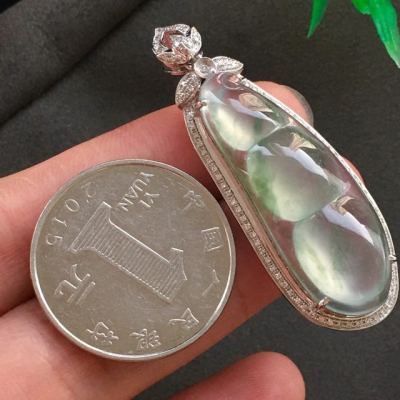 冰飘花翡翠福豆吊坠 色泽艳丽