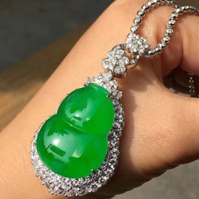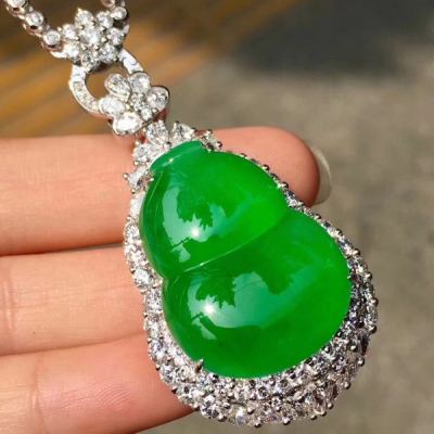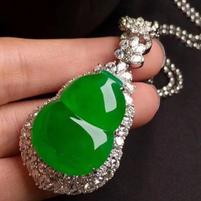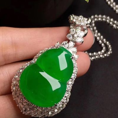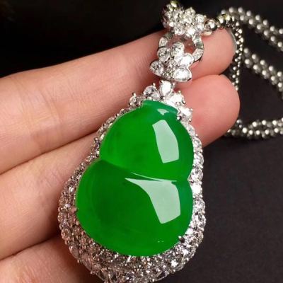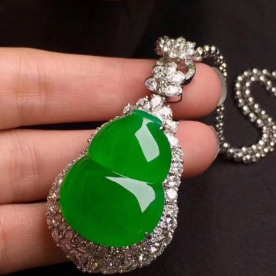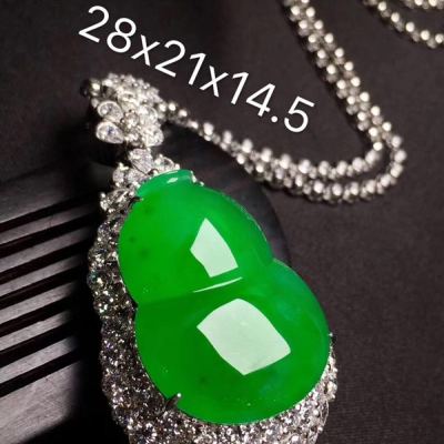 冰种正阳绿葫芦吊坠 裸石尺寸:28*21*14.5