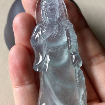 高冰关公 水头足 翡翠挂件 尺寸:61*24.5*9.2