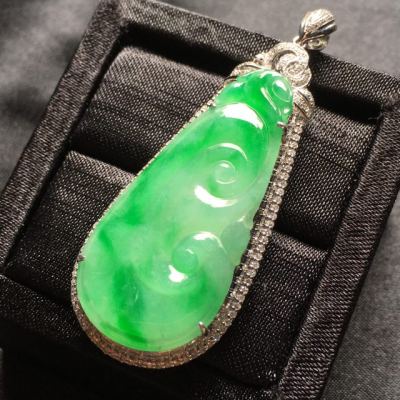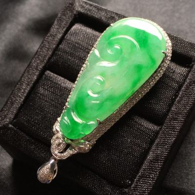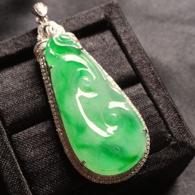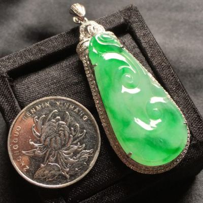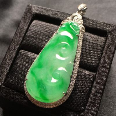 阳绿如意镶金翡翠 翡翠挂件 尺寸:40.4*20.3*1.9