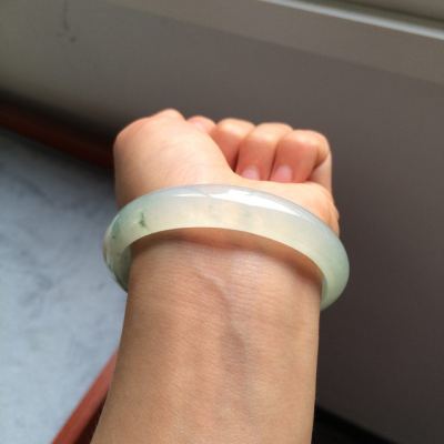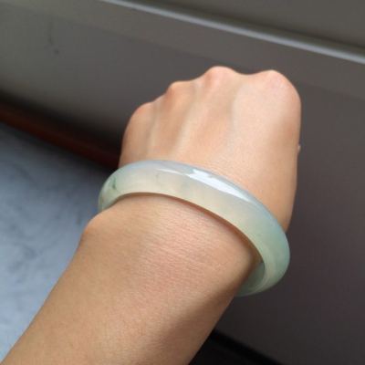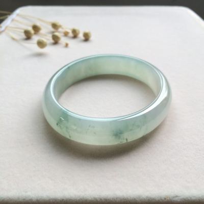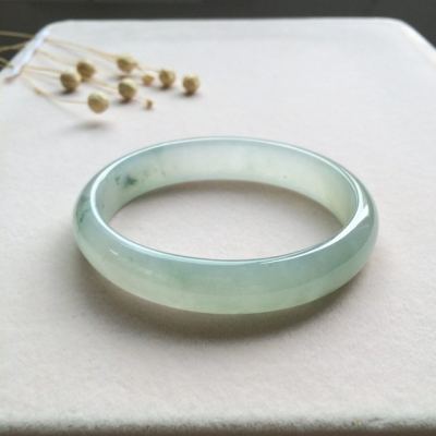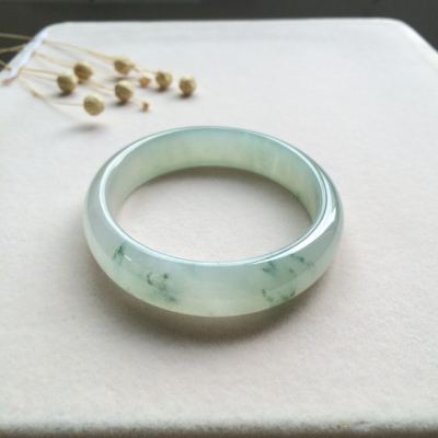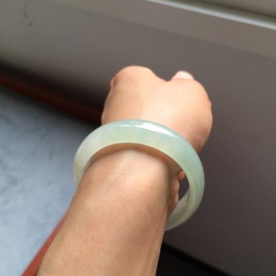 除了雕刻的雕花手镯外,素面型的翡翠手