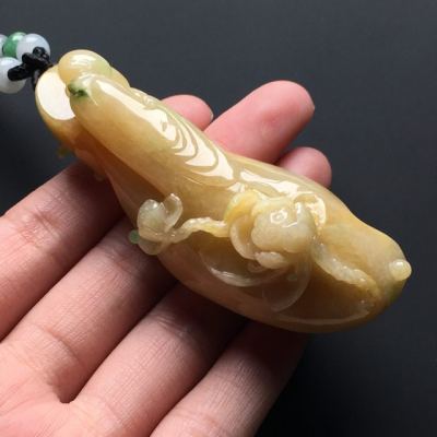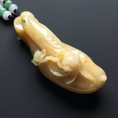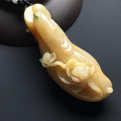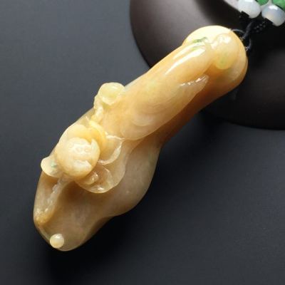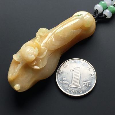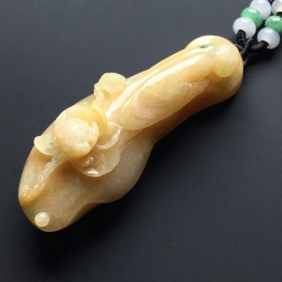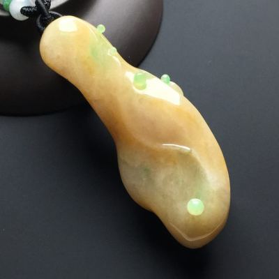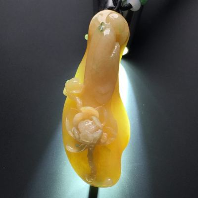 巧雕细糯种黄加绿 翡翠挂件 尺寸:70-25-19.3毫米