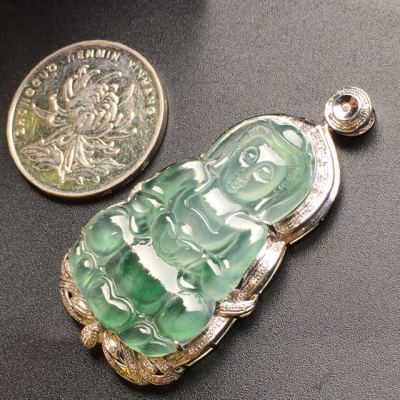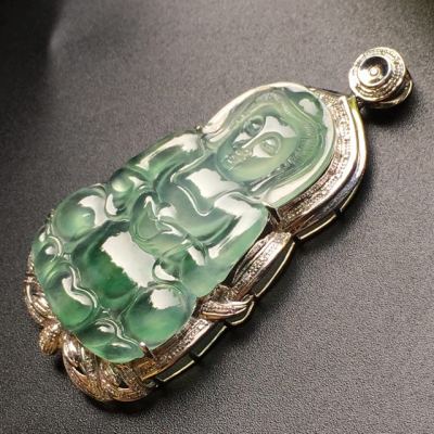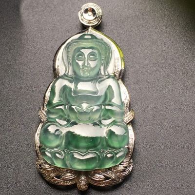 白冰飘花观音 翡翠挂件 裸石尺寸:37.1*22.8*2.4
