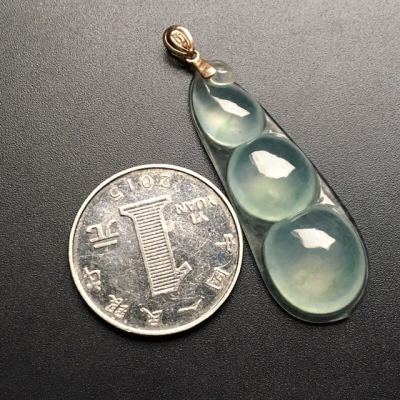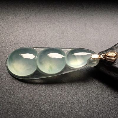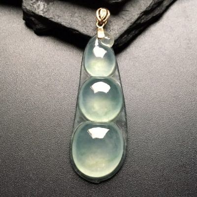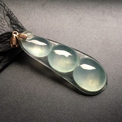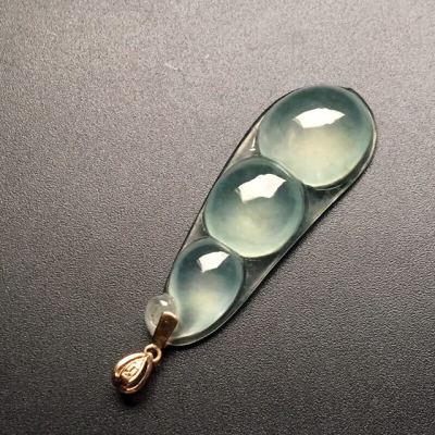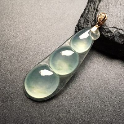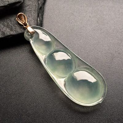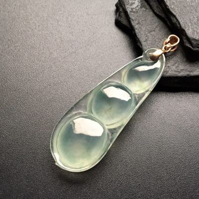 冰种福豆 翡翠挂件 尺寸: 43-16-6mm